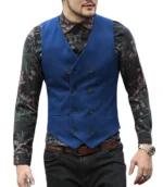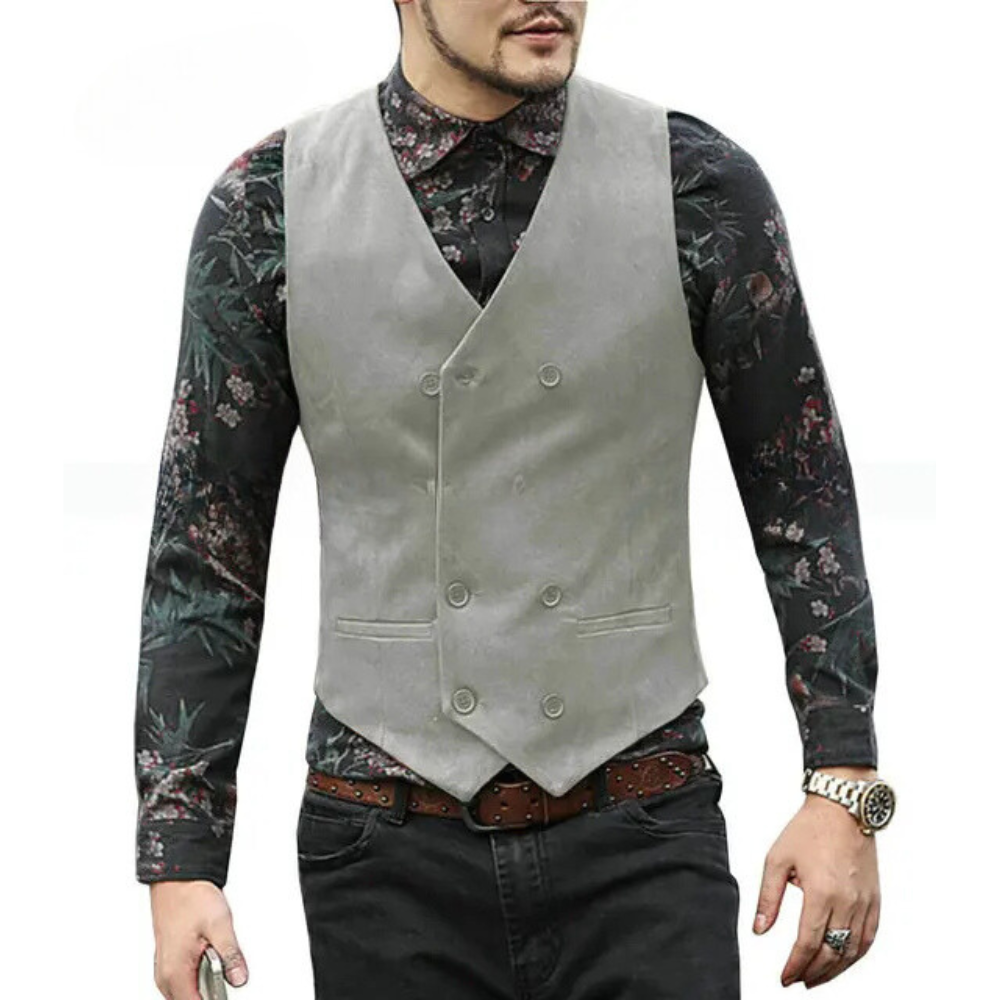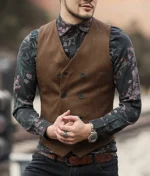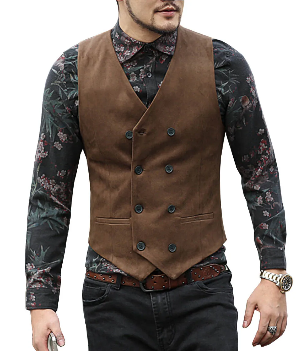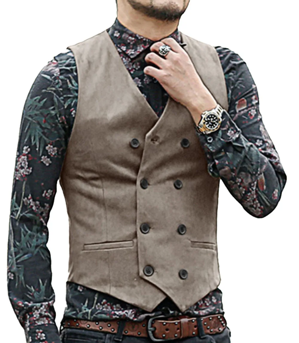 Sofistikerad herr dubbelknäppt western ullväst för alla tillfällen
