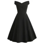 Upptäck denna unika vintage axelbandslösa westernfestklänning med en stilren v-hals, perfekt för alla festliga tillfällen. Med sin smickrande A-linjära silhuett framhäver den dina kurvor och ger ett klassiskt och sofistikerat intryck. Den mjukt stretchiga satinfabricen erbjuder både komfort och rörelsefrihet, vilket gör klänningen idealisk för sommarfester, bröllop eller andra speciella evenemang.